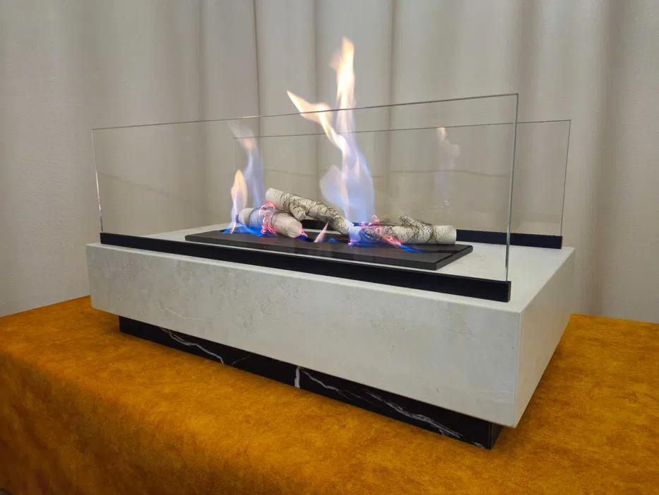 Wyjątkowy, ręcznie wykonany biokominek z luksusowych płytek gresowych. Łączy nowoczesny design, precyzyjne rzemiosło i ciepło ognia – nie ma drugiego takiego egzemplarza.